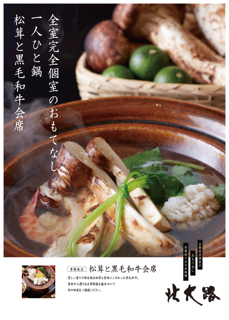 一人ひと鍋、ご接待に相性の良い、松茸と黒毛和牛会席会席。 芳しい香りで秋を語る松茸と旨味にこだわった黒毛和牛。 素材から湧き出る季節感を盛り合わせにて旬の味覚をご堪能ください。 ご接待、ご会食、お顔合わせ、外国の方のおもてなしなど、様々なシーンにおすすめのコースです。日本の伝統の味を贅沢にお楽しみください。 2018年6月4日(月)より販売を開始いたします。