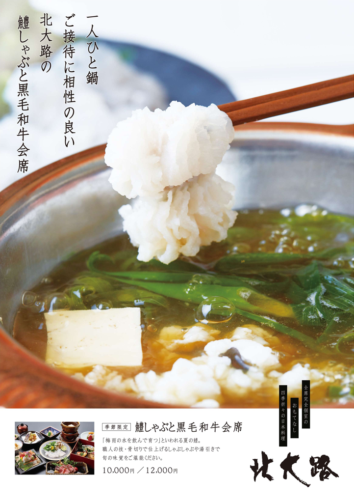 一人ひと鍋、ご接待に相性の良い、鱧しゃぶと黒毛和牛会席。